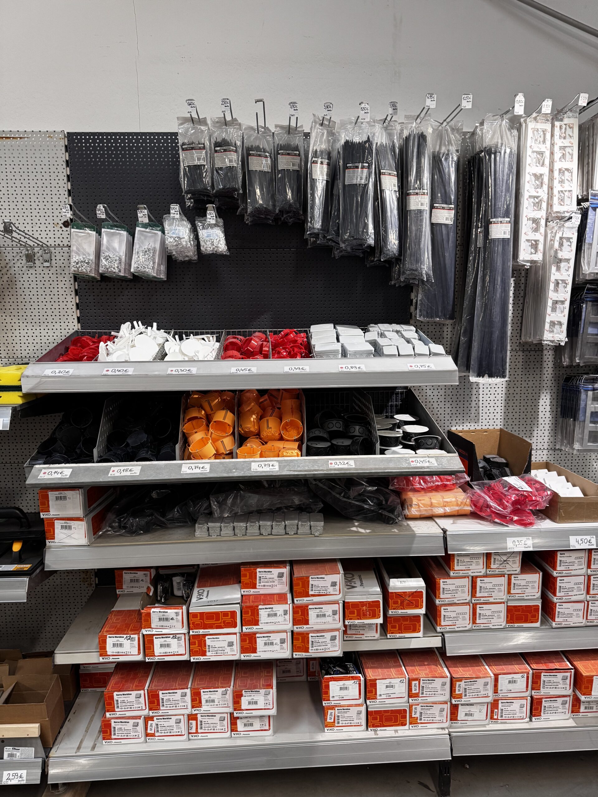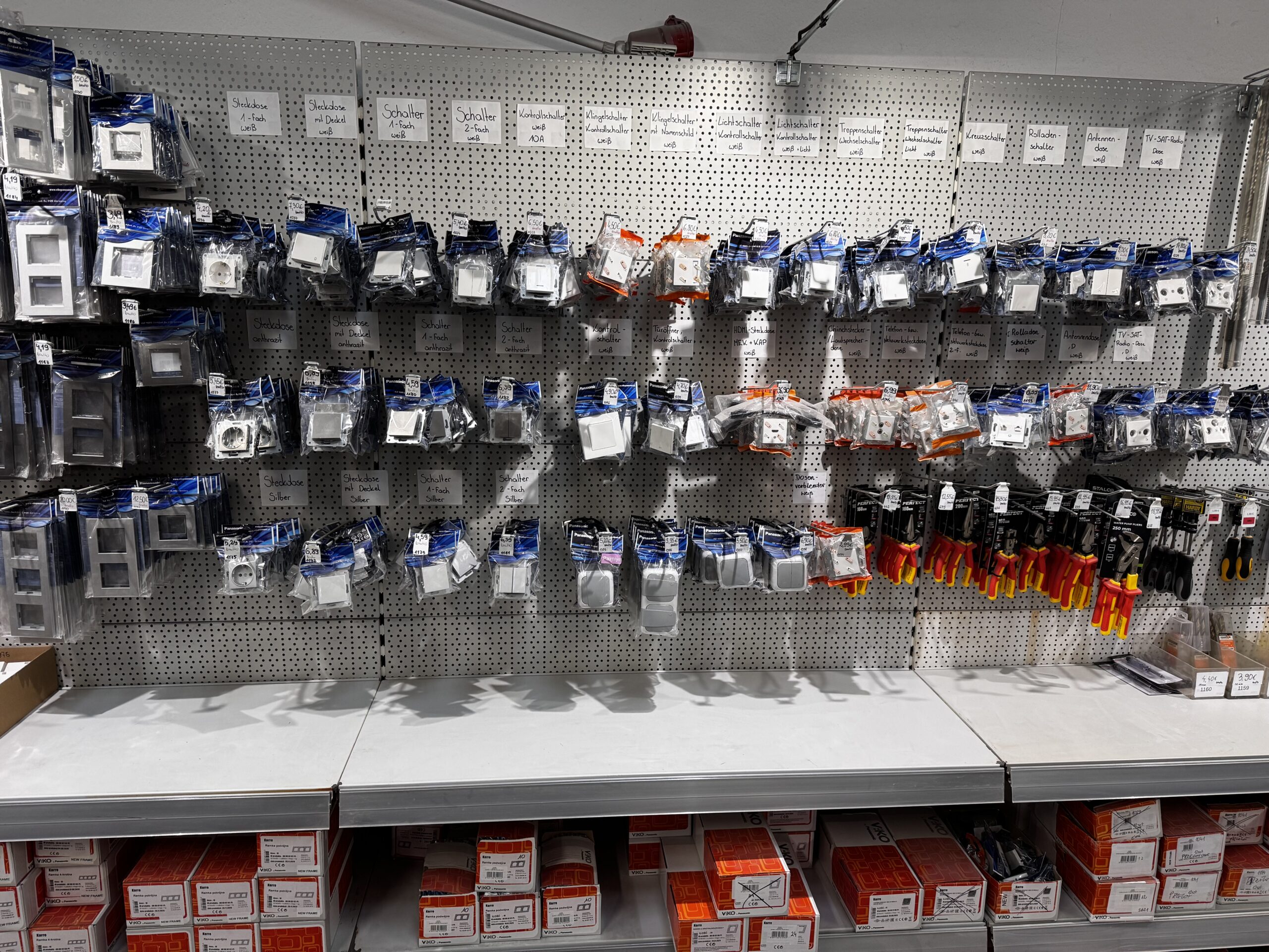Hohlwanddosen, Kabelkanäle, Unterputz-Verteiler, Schalter- und Steckdosenprogramme, LED-Einbauspots, Bewegungsmelder, Cat-Kabel, NYM-Leitungen, Installationsrohre, Klemmen, Abzweigdosen und sämtliches Kleinzubehör – in allen gängigen Größen und Ausführungen ständig auf Lager.