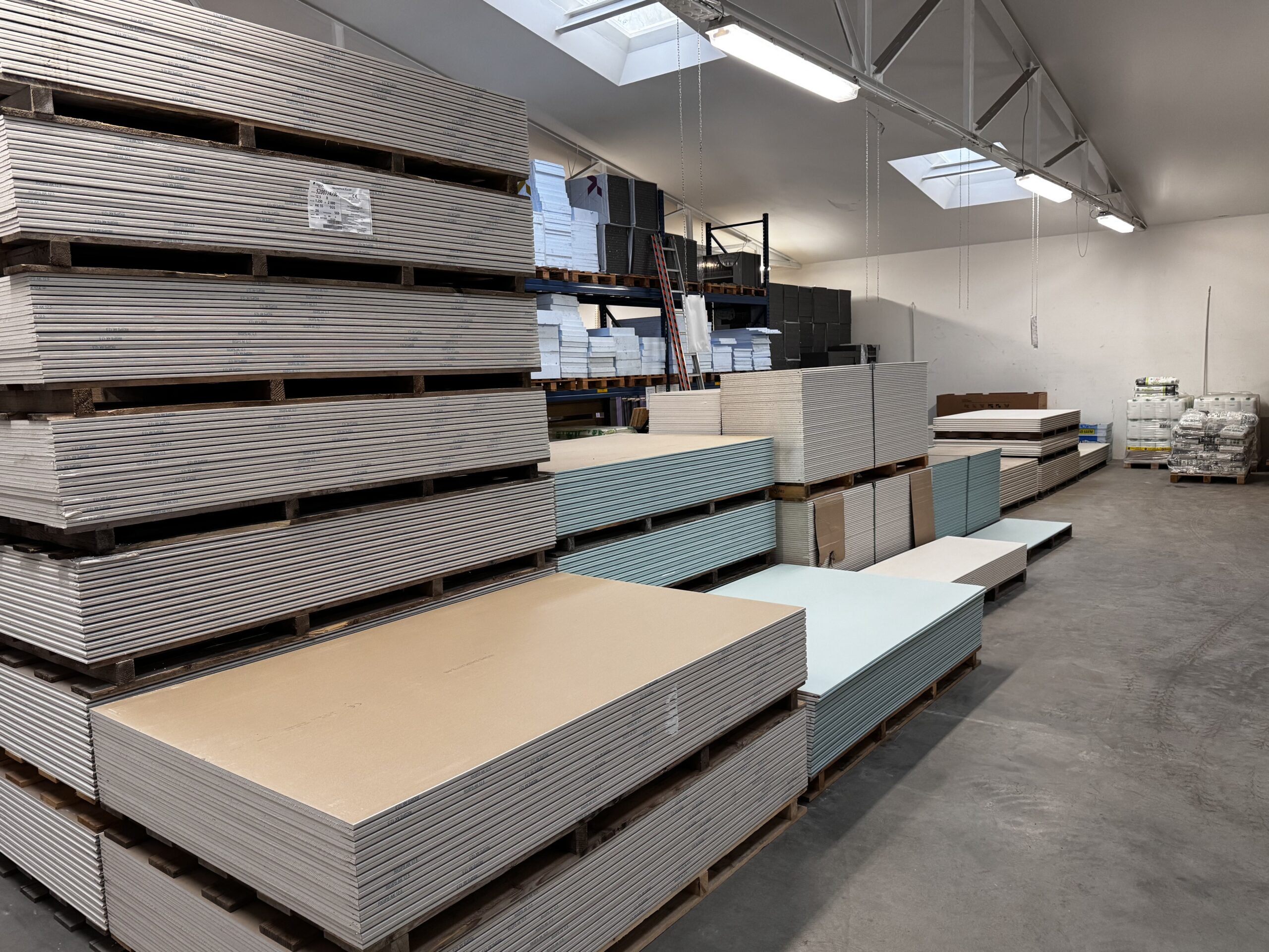 Alles um Rigips, Profile und Dämmung Rigips-Platten (Standard, imprägniert, Brandschutz, Akustik), Gipsfaserplatten, OSB-Platten, Metallprofile CD/UD/CW/UW, Holzprofile, Mineralwolle, Trockenestrich-Elemente, Schrauben, Bänder, Fugenfüller und Eckschutzprofile – in allen Abmessungen und Stärken ständig verfügbar.